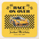 Race On Over Any Age Birthday Yellow Sports Car Square Paper Coaster