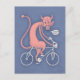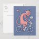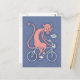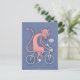 Folk art style devil on a bicycle, saying, "wanna race?"