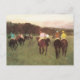 Racehorses at Longchamp (1873-5) by Edgar Degas is a vintage impressionist fine art painting featuring jockeys on race horses. The men are making their way to the starting line.