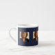 Espresso Mug featuring a repeated tile of a Rachel Dolezal photo with navy blue background.