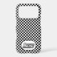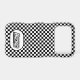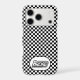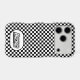 This iPhone case is shown with a black and white checkered racing print.