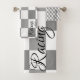 Race towels in a grey and white chequered pattern. The racing text can be personalised, or text is removable. Great gift for a race team, fan, or sponsor.