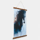 Racing Black Horse Portrait Minimalist Hanging Tapestry