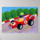Unique and funny Labrador Retriever Art painted by Naomi Ochiai. Labrador gifts for Labrador lover's home. A cool Black Lab is racing with his fancy sport car.