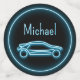 Racing Car and Male Name / Age on Neon Blue Look Confetti