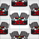Racing Car Design Fabric featuring a tiled design of red race cars on a customisable background colour.