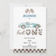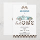 Celebrate your little speedsters big day with this racing car first birthday invitation! Featuring chequered flags, a vintage blue race car, and bold "Fast ONE- lettering, this design perfectly captures the thrill of the racetrack. Ideal for boys birthday parties, it includes customisable event details and a playful racing theme that guests will love. A stylish chequered border completes the look, making it a standout choice for a memorable first birthday celebration.