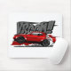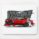 Design for all car racing enthusiasts, a red car starts at full speed and the engine emits its roar: Vroom!