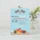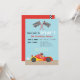 A race themed birthday party invite for birthday boys who love racing cars. This invitation comes with striking, colourful and cute design elements which include the race colours of red, black and white and chequered flags, a sports car with a little racer inside, the venue named tongue in cheek as a race track. You can personalise easily with your party details including the name and number on the car!
