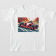 100% cotton so perfect for summer, It is a nicely designed t-shirt, the fabric is soft and the seams finished well, the body of the t shirt has no side seams. I bought a medium size for my two grandsons, aged 9 and 8 it will be slightly big on them but I would rather that than too small