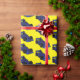 Cool wrapping paper printed all over with cute blue racing sports cars on a bright yellow background