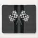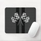 Racing Flags on Black Stripes Carbon Fibre Style Mouse Pad