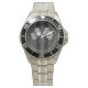 Has heft and feel of expensive stainless steel quartz watches. Good band with safety catch. I removed links, which is easy because engraved arrows show direction to push the linking pins. As always by this seller, the image (a railroad logo) is a perfect reproduction of my emailed image, and is precisely spaced and aligned.