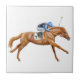 Original fine art design of a galloping Thoroughbred race horse by artist Carolyn McFann of Two Purring Cats Studio printed on a quality ceramic tile for horse racing fans.