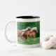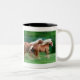 Pair of palomino horses galloping in a race across a field ceramic coffee mug.