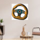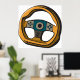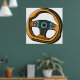 Vibrant cartoon racing steering wheel poster. This fun, hand-drawn graphic features a colorful video game controller design perfect for decorating a gamer's room, man cave, or home office. Great art for fans of arcade racing, driving simulators, and car enthusiasts. Add a pop of retro gaming style to your wall decor with this unique illustration print.