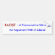 RACIST, - A Conservative Winning, An Argument W... Bumper Sticker