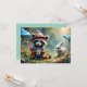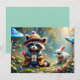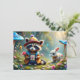 A cute racoon and a rabbit pal with a greeting/birthday card