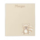 This beige racoon graphic personalise notepad features a beige background with a brown and white racoon at the bottom right. The name on the top is in brown print. Place your order today!