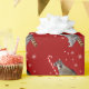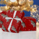 Wrap your presents with an adorable racoon eating a giant candy cane surrounded by snowflakes on a red background.