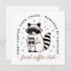 Feral coffee club racoon lover funny sarcastic chaotic girl humour quotes. Cool caffeinated wild animal drinking coffee and wearing sunglasses aesthetic gift small white print card.