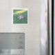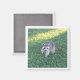 This square magnet captures a charming young racoon energetically stomping through lush green summer fescue. A beautiful sunlit highlight shines through the grass in the background, adding a touch of warmth and **ecology** to the scene. A delightful way to bring a bit of nature's playful energy to any magnetic surface.