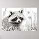 Racoon Peaceful Nature Prairie Sketch Drawing Art Poster