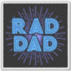 This holiday design features a modern blue text "Rad Dad" in popular typography.