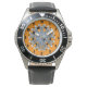 Watch, Stainless Steel Black Leather