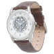 The watch looks really great! Very sharp and well done. The leather band is really nice, though for a man's watch I think it should be longer. Unfortunately, it isn't big enough for my husband's wrist but I will get a replacement because he is very excited to wear it!