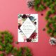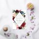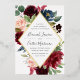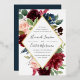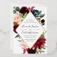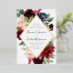 Our Radiant Bloom wedding invitation surrounds your wedding details with a geometric frame of painted watercolor flowers in burgundy marsala, blush pink and navy blue, with green eucalyptus foliage. A modern yet organic choice in green and white with lush, colourful botanicals and handwritten lettering, with luxe gold foil trim.