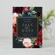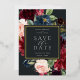 Our Radiant Bloom wedding save the date frames your wedding details with an elegant square border of lush watercolor foliage and flowers in blush pink, burgundy plum and dusty blue, with real gold foil trim on a rich charcoal background.