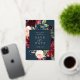 Our Radiant Bloom wedding save the date frames your wedding details with an elegant square border of lush watercolor foliage and flowers in blush pink, burgundy plum and dusty blue, with real gold foil trim on a rich navy blue background.