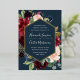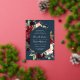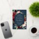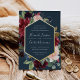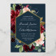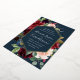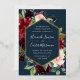 Our Radiant Bloom wedding invitation surrounds your wedding day details with a geometric frame of painted watercolor flowers in burgundy marsala, blush pink and navy blue, with green botanical foliage and eucalyptus leaves. A beautiful choice in lush, saturated colours for fall or winter weddings, with elegant gold foil trim to complete the look.