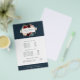 Elegant floral flyer card design displays your services, price list or business information beautifully. Design features a jewel tone watercolor floral logo in blush pink, burgundy marsala and sage green, framing your name and/or business name against a contrasting deep navy blue background. Includes three customisable headings and body text fields, and space for your business contact information along the bottom. To adjust layout, enter your text and then use the Customise function to change positioning and font sizes.