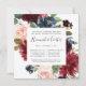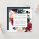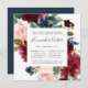Our Radiant Bloom floral rehearsal dinner invitation in a unique square format frames your wedding ceremony rehearsal and dinner details with painted watercolor flowers in blush pink, burgundy marsala and navy blue, with green eucalyptus foliage.
