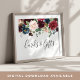 Designed to match our Radiant Bloom wedding collection, this elegant botanical sign lets guests know where to drop off their cards and gifts. Personalise with one line of custom text in calligraphy script lettering (shown with "Cards & Gifts"), framed by rich jewel toned watercolor flowers and green foliage.