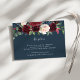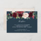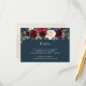 Designed to coordinate with our Radiant Bloom wedding collection, this elegant botanical reception enclosure card in rich navy blue features a spray of burgundy marsala, blush pink and navy blue flowers with green eucalyptus foliage, topping your wedding reception details, venue and timing.