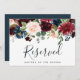 Indicate reserved seating at your wedding with this chic jewel toned floral sign. Personalise with two lines of custom text in calligraphy script and modern block lettering (shown with "Reserved" and the name of the guest with reserved seating), framed by lush watercolor flowers and green foliage in rich autumn shades/