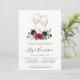 Elegant floral invitations for wine themed or wine tasting rehearsal dinners feature two clinking glasses of rose wine adorned with watercolor flowers in rich jewel tones that match our Radiant Bloom collection. Personalise with your rehearsal dinner details beneath in a chic mix of block, serif and calligraphy typefaces. Includes space for both the wedding ceremony rehearsal and dinner or celebration.