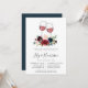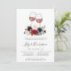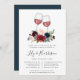 Elegant floral invitations for wine themed or wine tasting rehearsal dinners feature two clinking glasses of red wine adorned with watercolor flowers in rich jewel tones that match our Radiant Bloom collection. Personalise with your rehearsal dinner details beneath in a chic mix of block, serif and calligraphy typefaces. Includes space for both the wedding ceremony rehearsal and dinner or celebration.