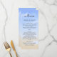 Impress guests with these stunning watercolor menu cards, featuring a serene gradient of blue and gold skies inspired by a summer beach sunset. Perfect for coastal, tropical, or destination weddings, this design blends minimalist elegance with the relaxed charm of a seaside celebration.