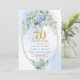 Radiant Boho Blue Floral Gold Frame 70th Birthday Invitation