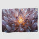 Behold the magnificent beauty of a glowing crystal cluster. At the heart of this stunning formation, a central crystal emanates a warm, golden light, illuminating the surrounding points of pale pink and amethyst-colored quartz. A closer look reveals intricate, web-like fractures within the core, suggesting a deep, contained energy. This mesmerizing image captures a sense of natural wonder, hidden power, and ethereal magic, drawing the viewer into its enchanting depths.
