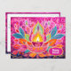 The Happy Diwali card is a vibrant celebration of the festival, exuding warmth and joy. The card features a central motif of a beautifully designed decorative diya, glowing brightly against a backdrop of magenta and amber hues. This diya symbolises the triumph of light over darkness, a core theme of Diwali.