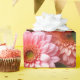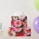 Large blooming flowers in soft pink, coral, and cream tones fill the composition, wrapped with a bold red ribbon that adds contrast and structure. The layered petals and warm colour harmony create a festive, elegant scene that feels joyful, decorative, and visually captivating.