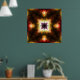 This striking abstract design features a luminous star-shaped pattern radiating from the centre, surrounded by layers of glowing yellow, orange, red, and deep brown tones. The symmetrical lines and prism-like reflections create a dazzling starburst effect with a sense of energy and movement. Blending warmth, light, and geometry, this design evokes a modern, futuristic, and mesmerising aesthetic.