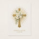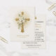 A radiant gold cross adorned with delicate white florals and luminous rays symbolizes the grace and sacrificial love at the heart of Christian marriage. Set against a soft ivory background with refined gold accents, this design offers a timeless and reverent presentation.