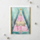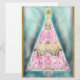 This festive artwork features an abstract Christmas tree created with watercolor-inspired brush strokes, blending soft pinks, golds, and greens into a harmonious pattern. Set against a luminous turquoise background with gold speckles, the tree is crowned with a glowing star and framed with a golden border. The elegant composition evokes a sense of joy and sophistication, perfect for celebrating the holiday season.
