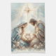 This serene Holy Family nativity design centers on a radiant newborn beneath a brilliant guiding star, surrounded by gentle celestial glow and soft watercolor light that evokes reverence and peaceful Christmas wonder. Mary and Joseph lean close in quiet devotion, their flowing robes painted in calming pastel blues and warm neutrals that create a tender, intimate moment of sacred stillness. Delicate shimmering accents, soft foliage, and luminous orbs frame the scene, blending traditional Christian symbolism with an elegant, modern watercolor style that feels timeless yet fresh for today’s seasonal décor trends. Ideal for anyone drawn to faith-filled imagery, tranquil holiday themes, or softly glowing devotional illustrations that celebrate the beauty of Christ’s birth, this design brings a warm sense of hope and holy night reflection. AI generated artwork.